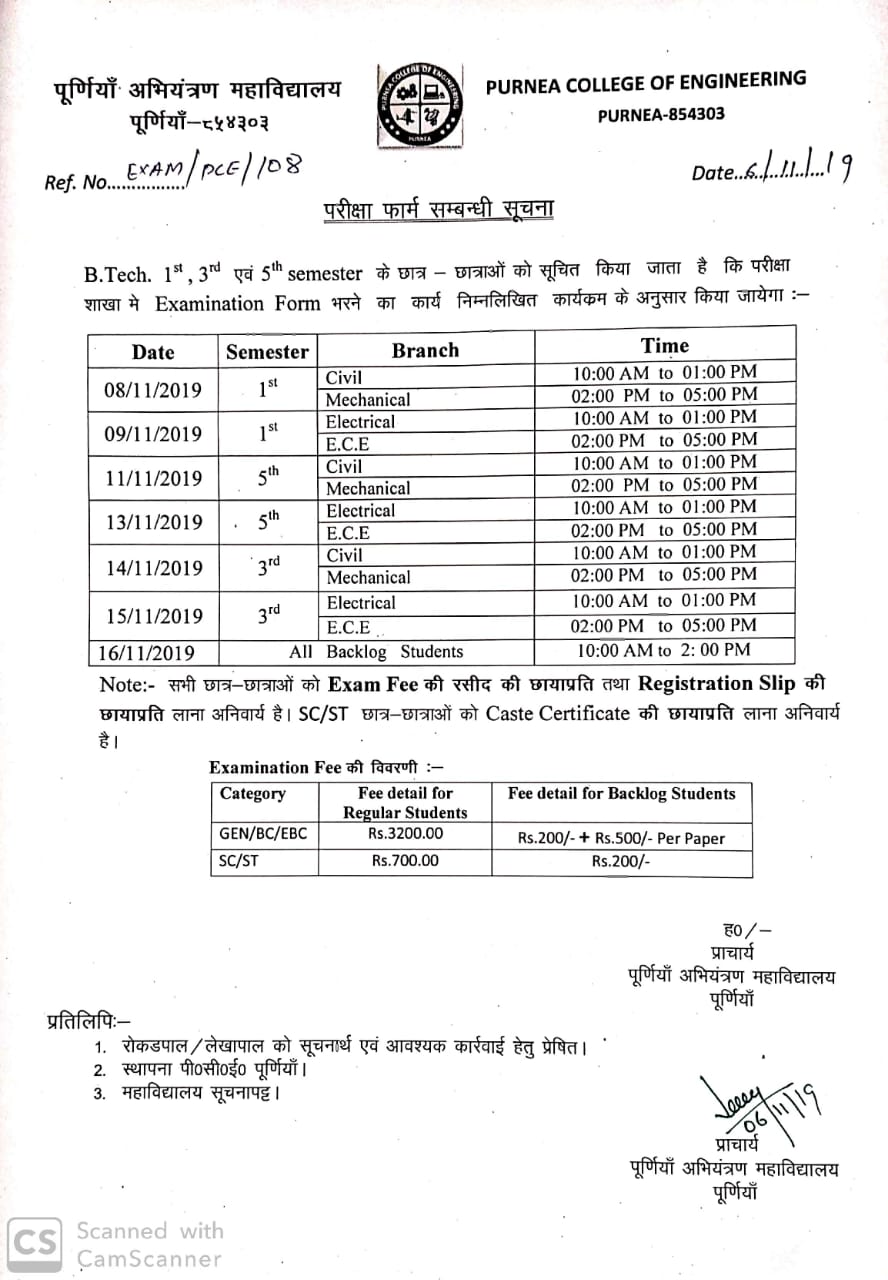 Examination Form for all student