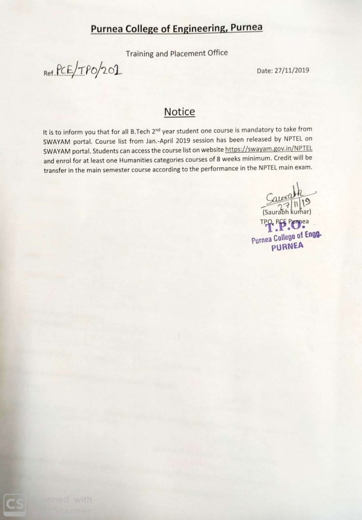 Registration of online courses on SWAYAM portal for NPTEL certificate and credit transfer in 4th Semester